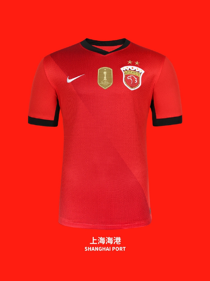 海港球衣是其代表性的紅色。設(shè)計(jì)者以上海的城市天際線為靈感,將天際線元素融入到了紅色設(shè)計(jì)之中。即,球衣從右上到左下劃過(guò)一道分界線,兩側(cè)的顏色略有區(qū)分。在球衣領(lǐng)口的內(nèi)側(cè),還有以現(xiàn)代都市高樓大廈輪廓為靈感的標(biāo)志設(shè)計(jì)。