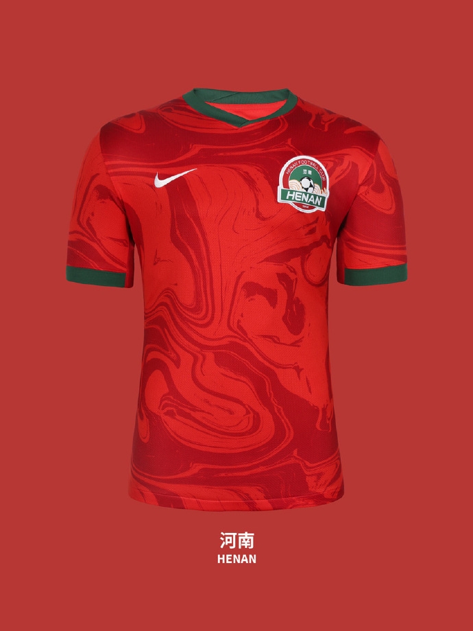 和天津球衣類似的是河南隊(duì)。他們采取了大膽的紅色水波紋印花,其靈感來(lái)自于流經(jīng)中原大地的黃河。同樣是很抽象,但視覺(jué)效果也同樣很好,而且色彩搭配恰如其分。不過(guò)卻有球迷“投訴”,這款球衣抄襲了切爾西,“而且抄得也不完整,少了炫光的LOGO。”