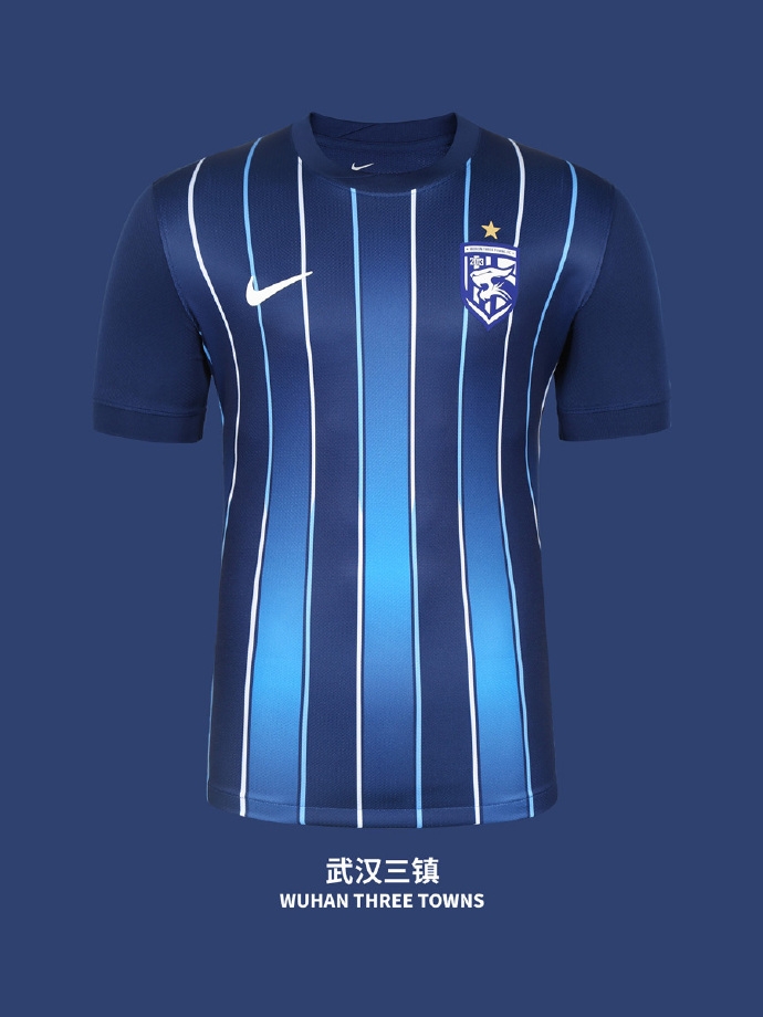 類似的豎條紋設(shè)計(jì)還有武漢三鎮(zhèn)。他們采用了大膽的藍(lán)色,條紋靈感來(lái)自于著名的武漢長(zhǎng)江大橋。長(zhǎng)江是武漢最重要的地理符號(hào)之一,球衣上自然少不了穿城而過(guò)的長(zhǎng)江水以及橫跨長(zhǎng)江的大橋。