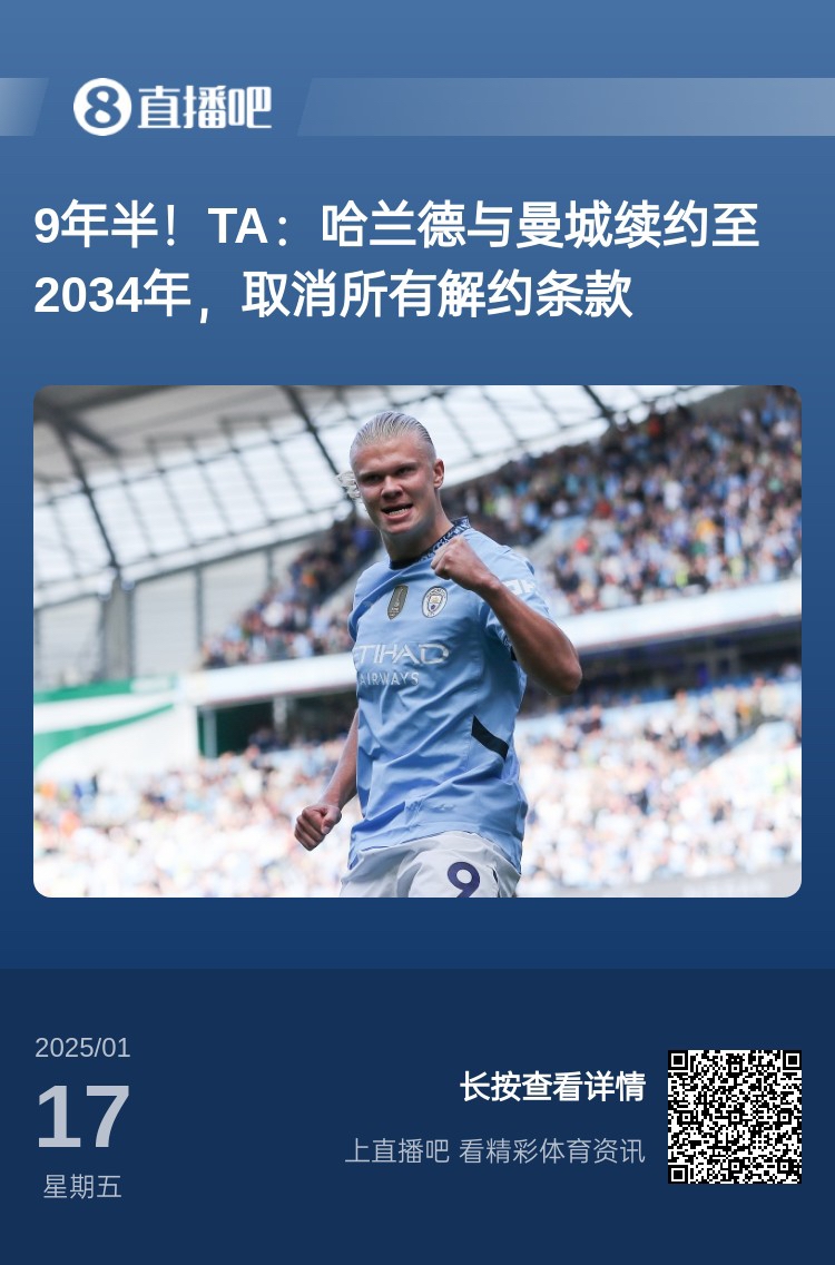 除特別注明外,本站所有內(nèi)容均為九球直播整理排版,轉(zhuǎn)載請(qǐng)注明出處:9年半!TA:哈蘭德與曼城續(xù)約至2034年,取消所有解約條款