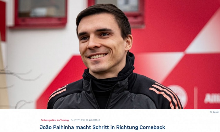 除特別注明外,本站所有內容均為九球直播整理排版,轉載請注明出處:拜仁官方:帕利尼亞自11月份受傷后,今天首次恢復合練