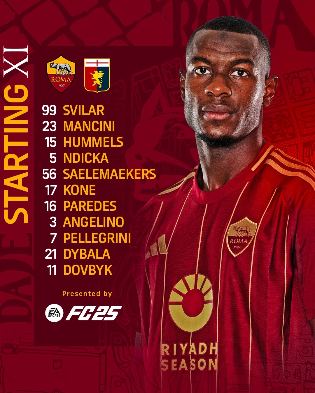 羅馬VS熱那亞首發(fā):迪巴拉、胡梅爾斯出戰(zhàn),薩勒馬科爾斯在列