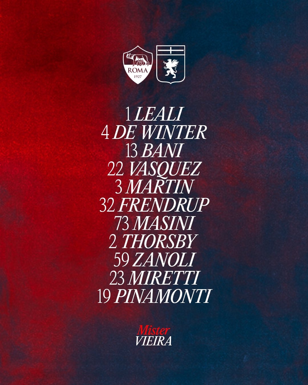 1-萊亞利、4-德溫特、13-巴尼、22-巴斯奎斯、3-馬丁、32-福倫德魯普、73-馬西尼、2-索斯比、59-扎諾利、23-米雷蒂、19-皮納蒙蒂