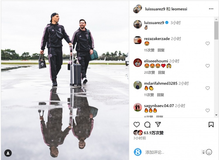 1月18日訊 邁阿密國際開始季前賽征程,梅西和蘇亞雷斯在社交媒體上曬出合照。