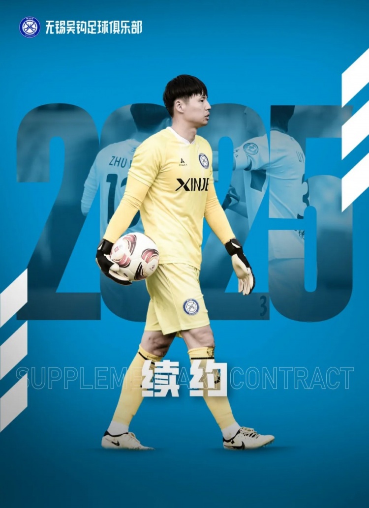我們?cè)诖肃嵵匦?,?jīng)雙方協(xié)商一致,無錫吳鉤足球俱樂部與守門員朱悅琪完成續(xù)約。2025賽季,他將繼續(xù)為無錫而戰(zhàn)!