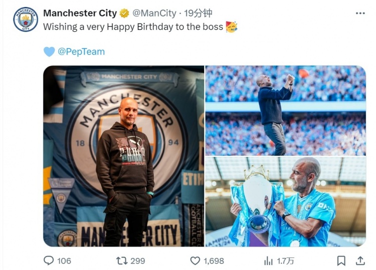 發(fā)布時間:2025年01月18日 18:43點擊:欄目:足球新聞 1月18日訊 今天是曼城主帥瓜迪奧拉的54歲生日,曼城官方為他送上祝福。曼城官方社媒曬出瓜迪奧拉的照片,寫道:“祝主帥生日快樂!”曼城社媒還曬出瓜迪奧拉與2023年五冠獎杯的合照,配文:“標志性人物。”瓜迪奧拉2016年執(zhí)教曼城至今,帶隊戰(zhàn)績364勝64平75負,幫助球隊贏得18座冠軍獎杯,包括6座英超獎杯和1座歐冠獎杯。 除特別注明外,本站所有內容均為九球直播整理排版,轉載請注明出處:曼城官方社媒曬瓜迪奧拉與獎杯合照,祝瓜帥54歲生日快樂 本文標簽: 足球 英超 曼城 瓜迪奧拉