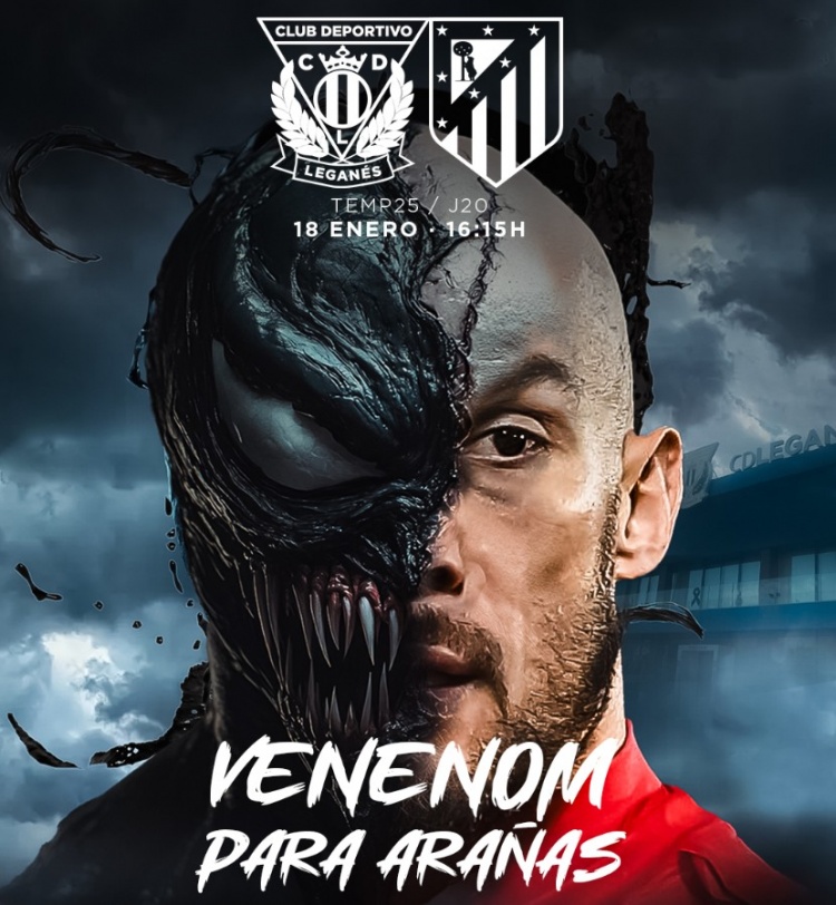 本場比賽之前,萊加內(nèi)斯發(fā)布了預(yù)熱海報,主角是漫威旗下著名反英雄毒液,但面部可隱約看到門將德米特羅維奇的形象。該海報利用了毒液和蜘蛛俠對抗的元素,在社交媒體上引起了強烈反響,因為馬競前鋒阿爾瓦雷斯的綽號為“小蜘蛛”。