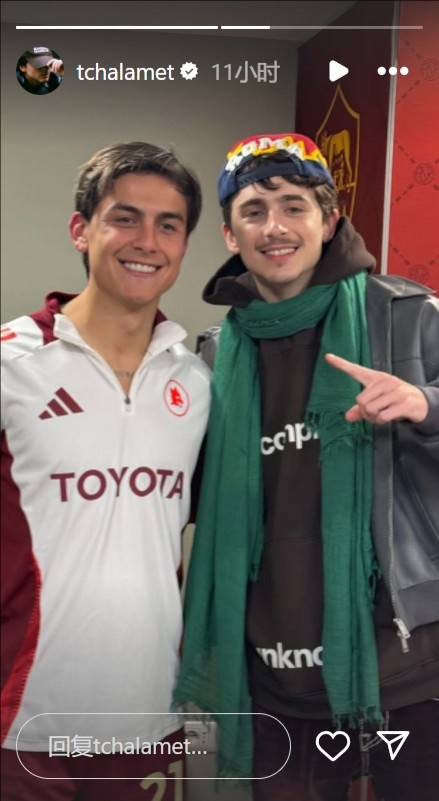 賽后,綽號“甜茶”的著名演員提莫西-查拉梅分享了與迪巴拉的合照,“甜茶”曾出演《星際穿越》、《沙丘》、《沙丘2》等影片。