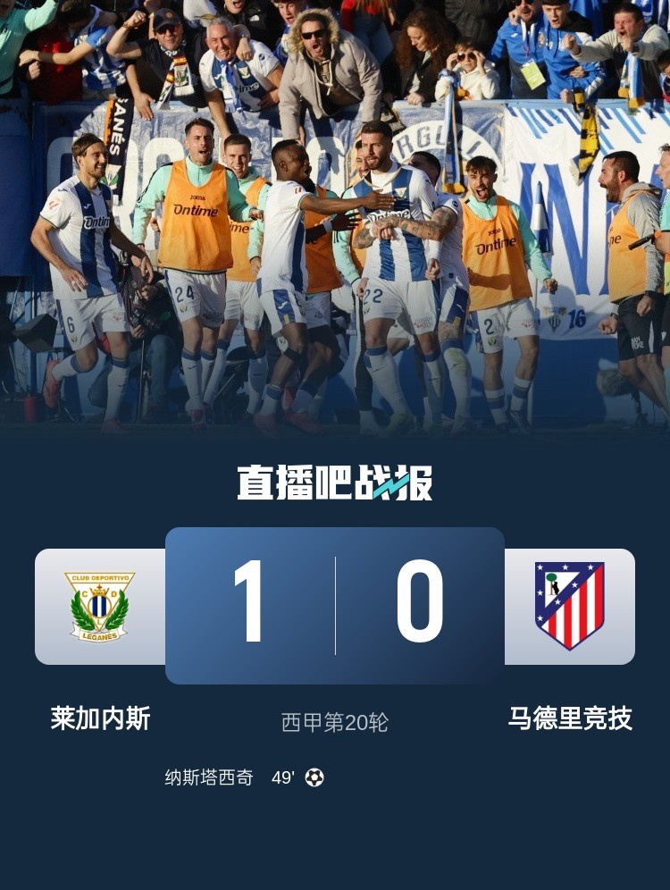 15連勝終結(jié)!馬競0-1萊加內(nèi)斯 先賽僅領(lǐng)先皇馬1分格子90分鐘失點.