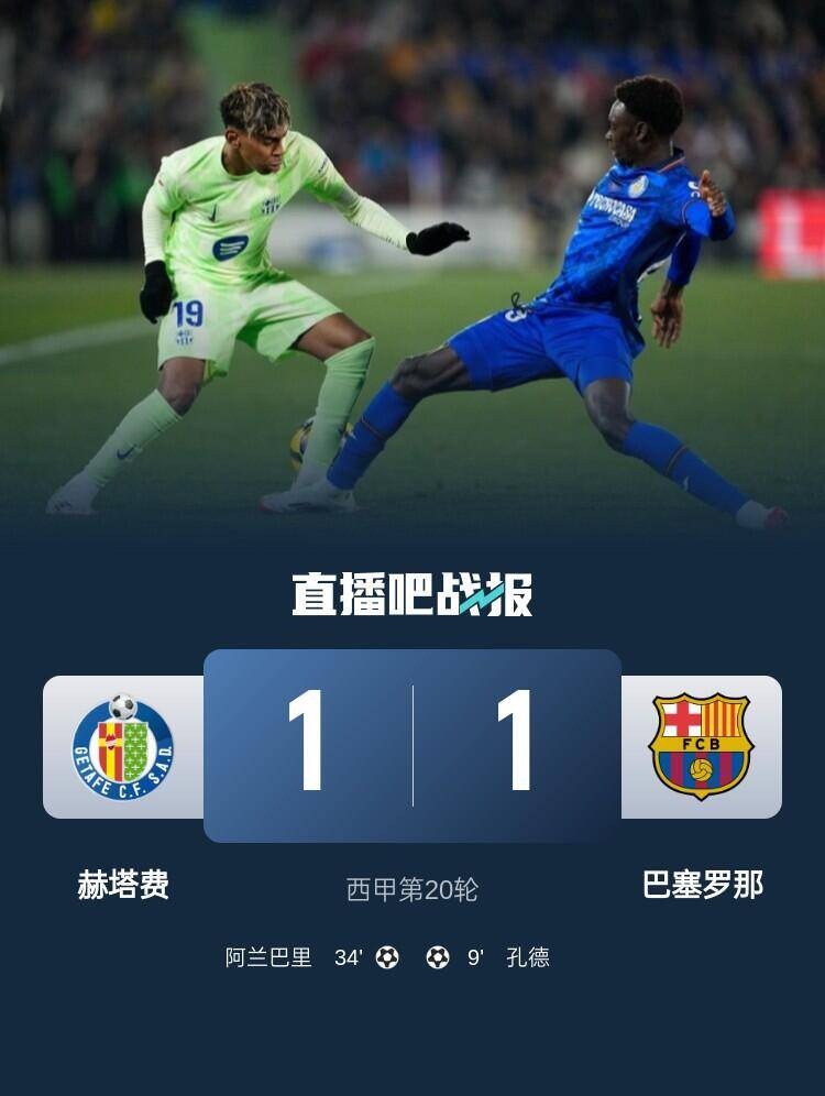 西甲第20輪,巴薩客場1-1戰(zhàn)平赫塔費,孔德閃擊,巴薩8輪僅1勝。