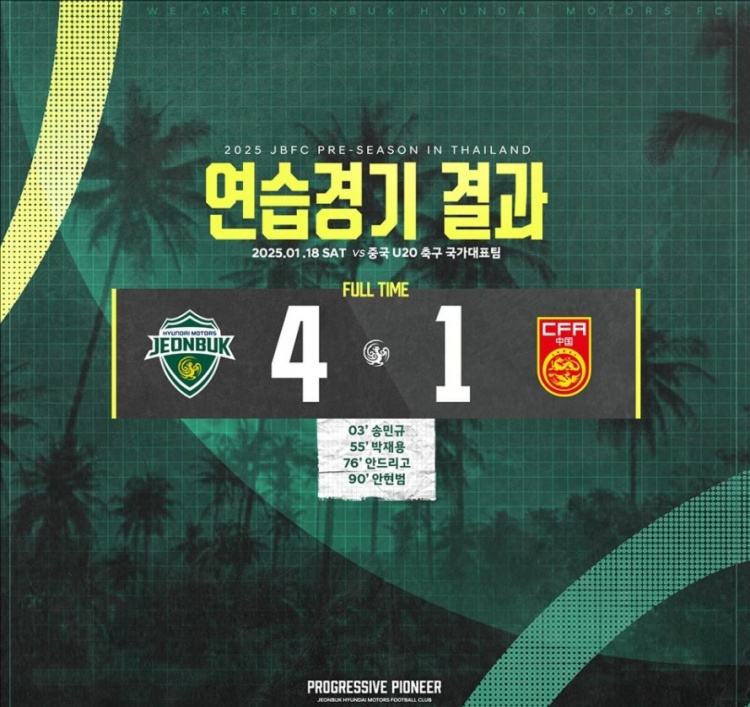 不過,僅僅2分鐘之后,全北隊(duì)馬上就還以顏色,右路一次配合打透了國青隊(duì)的左路,安賢范一腳抽射將比分鎖定為4-1!