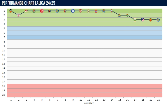 隨后3隊各賽8場,形勢發(fā)生大逆轉(zhuǎn)。馬競這8場拿到21分僅丟3分,20輪積44分領(lǐng)跑;皇馬這8場拿到19分,第20輪未賽落后馬競1分;巴薩這8場僅得6分,打到第20輪落后馬競5分、落后皇馬4分。
