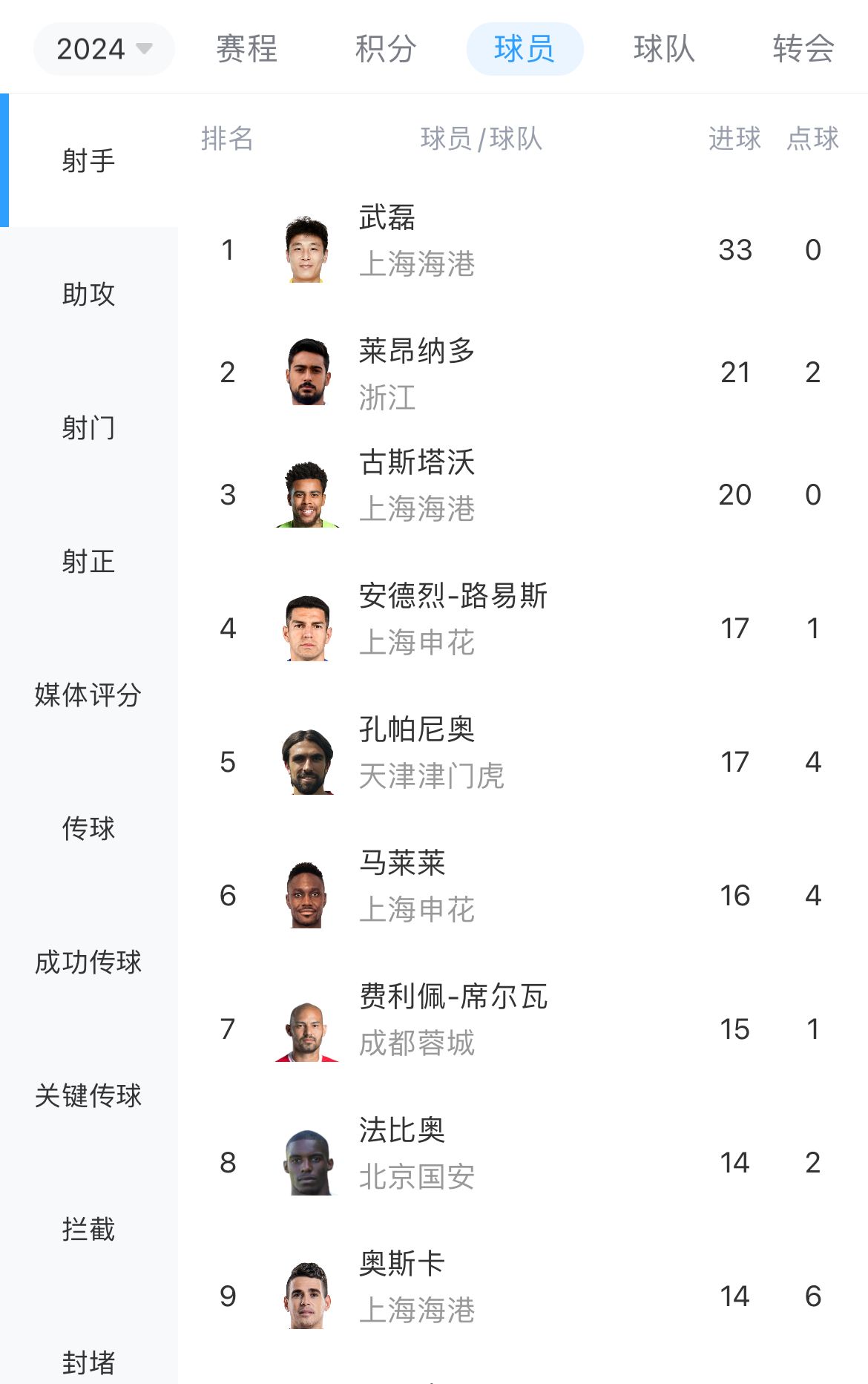 海港前鋒武磊30輪打進(jìn)34球且無一點(diǎn)球,成功加冕金靴。武磊也刷新了中超聯(lián)賽單賽季的進(jìn)球紀(jì)錄。