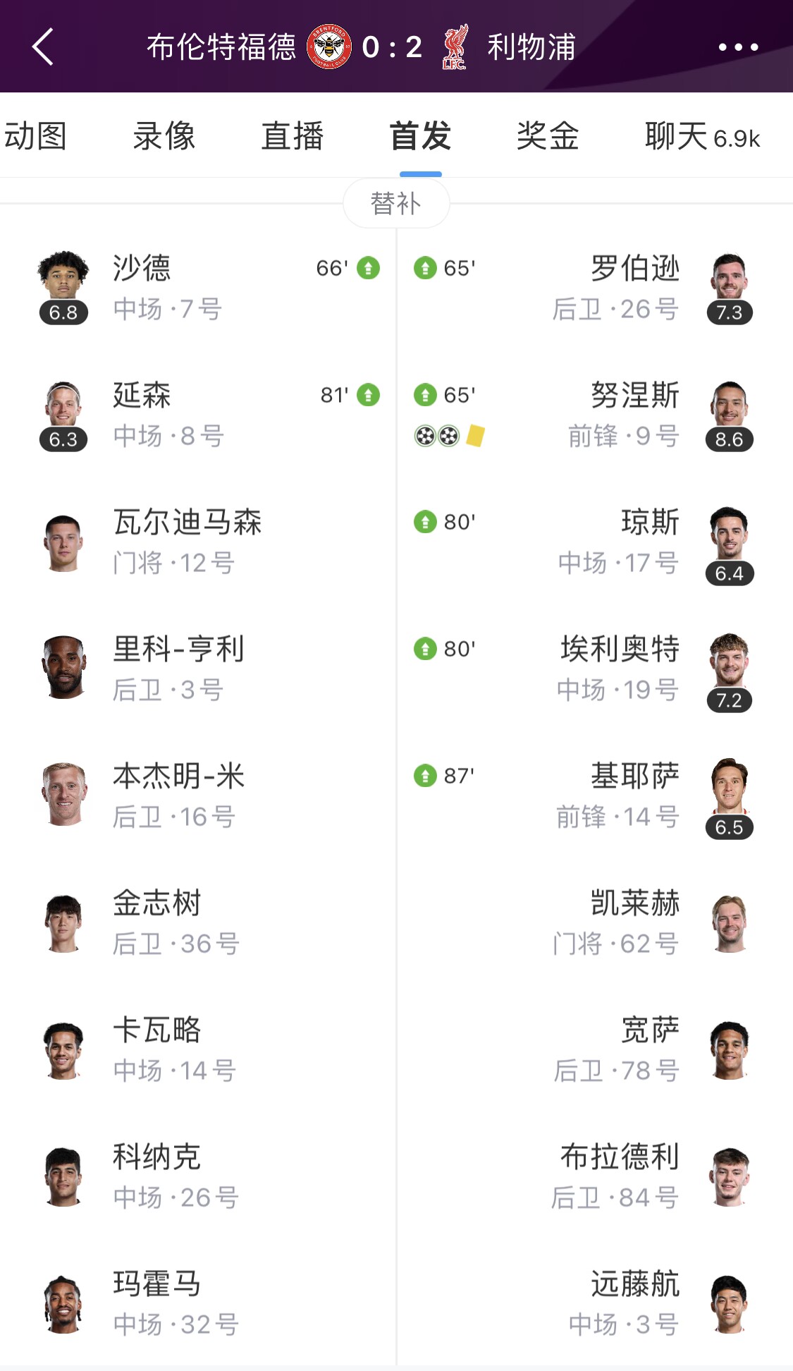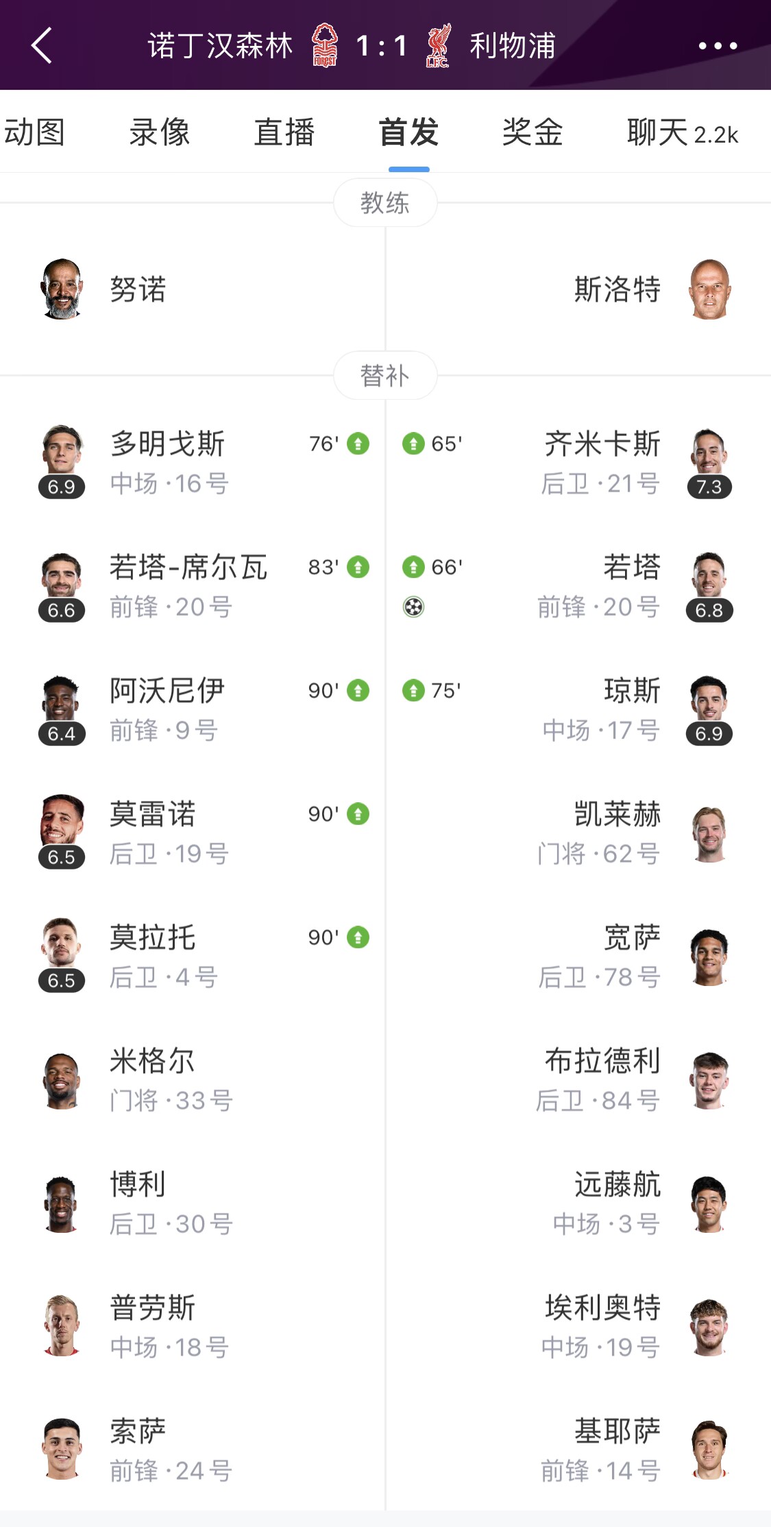 本場繼續(xù)客戰(zhàn),斯洛特?fù)Q上努涅斯、瓊斯、埃利奧特、基耶薩,完成最后補時兩球絕殺好戲。
