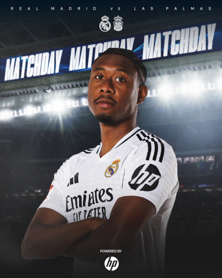 皇馬官方社媒發(fā)布了為此役制作的海報,此前傷缺一年多的阿拉巴單人出鏡。