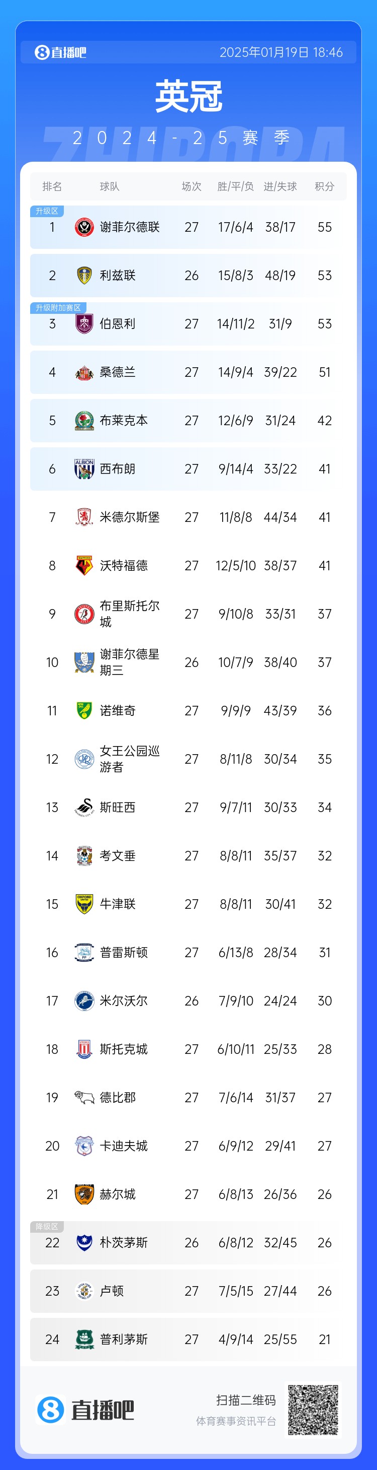 01月19日訊 英冠第27輪,盧頓坐鎮(zhèn)主場0-0戰(zhàn)平普雷斯頓,聯(lián)賽近5輪1平4負,在積分榜上直接掉到倒數(shù)第二位。