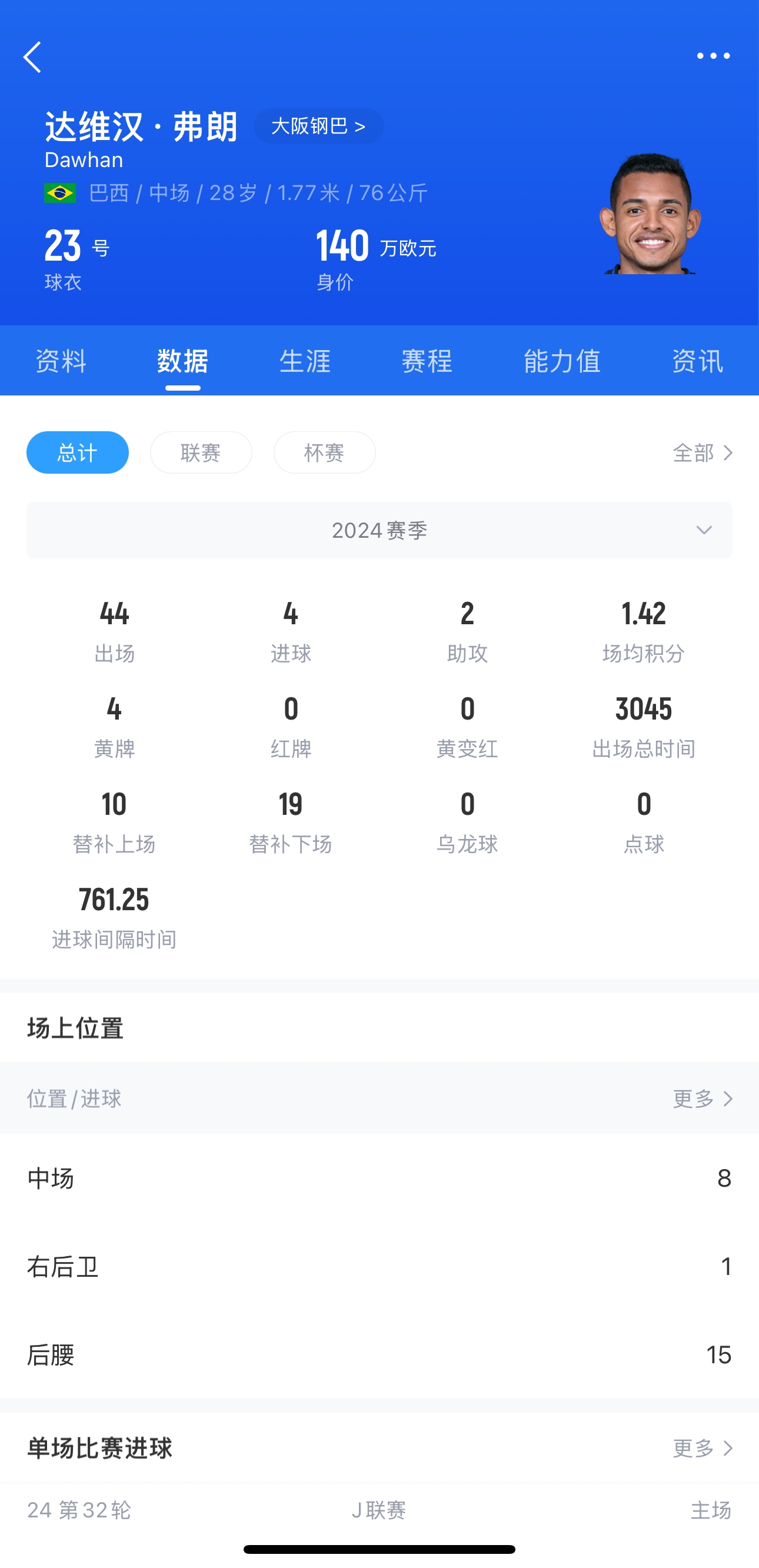除此之外,國安還打算在后腰位置上補(bǔ)強(qiáng),因此將達(dá)萬這個目標(biāo)鎖定。根據(jù)數(shù)據(jù)統(tǒng)計,達(dá)萬過去3個賽季連續(xù)效力于日本J聯(lián)賽傳統(tǒng)球隊大阪鋼巴,累計出場114次、打進(jìn)14球,是J聯(lián)賽過去幾個賽季里最優(yōu)秀的后腰球員之一。