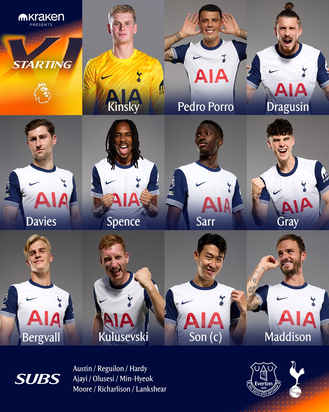 熱刺首發(fā):31-金斯基、23-佩德羅-波羅、6-德拉古辛、33-本-戴維斯、24-斯賓塞、29-薩爾、14-格雷、15-貝里瓦爾、21-庫(kù)盧塞夫斯基、10-麥迪遜、7-孫興慜