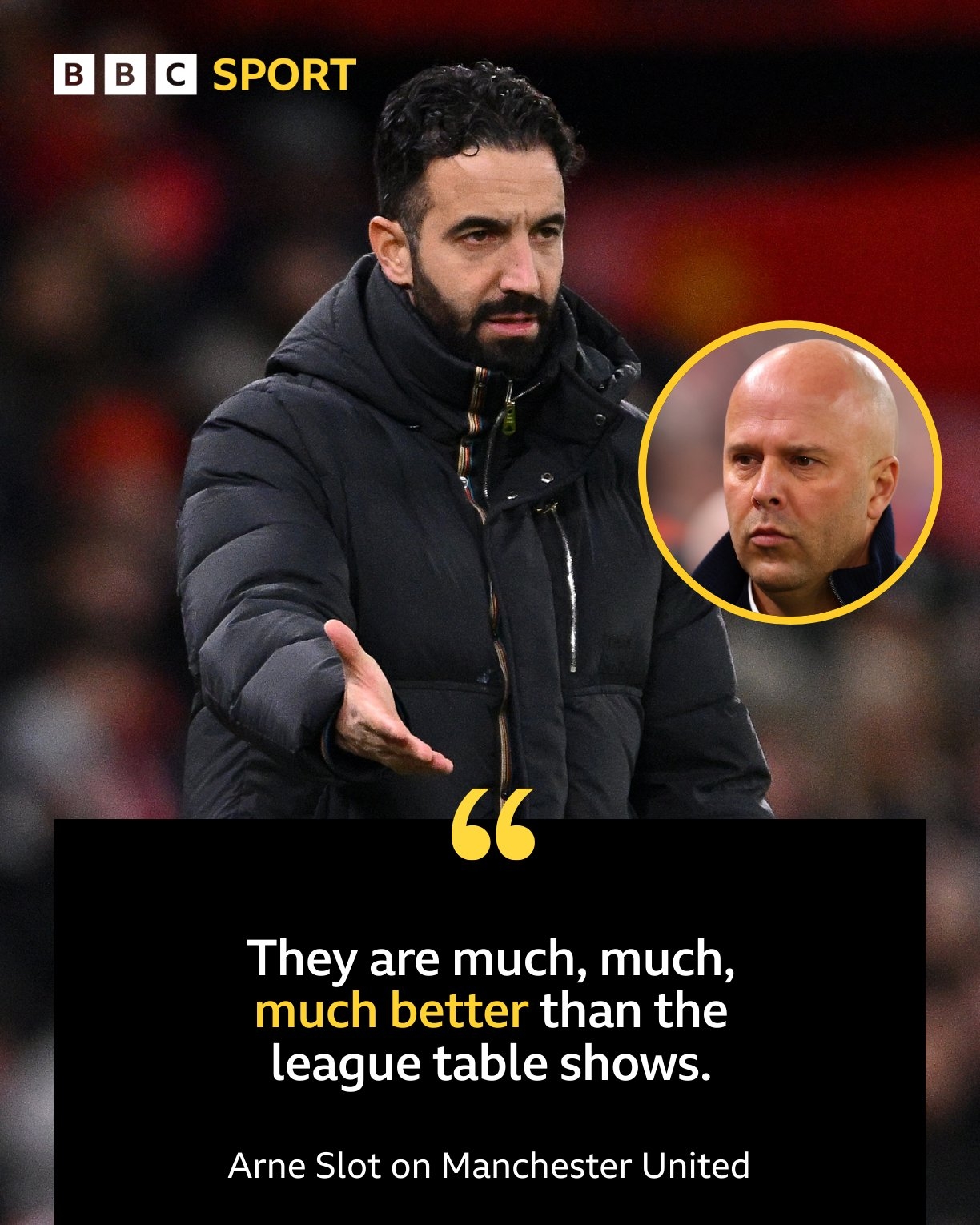本場(chǎng)賽前,曼聯(lián)主帥阿莫林承認(rèn)球隊(duì)可能陷入保級(jí)斗爭(zhēng)。記者向斯洛特提問踢曼聯(lián)會(huì)不會(huì)輪換時(shí),斯洛特說道:“這是個(gè)很奇怪的問題,不,我不打算這樣做(輪換),這是一場(chǎng)重要的比賽,我之前就說過了,現(xiàn)在我再說一次。他們擁有一批很棒的球員,比積分榜顯示的應(yīng)該好得多得多得多,對(duì)于魯本(阿莫林)來說可能需要一段時(shí)間,但他們肯定會(huì)上升,并且比現(xiàn)在聯(lián)賽積分榜體現(xiàn)的要好得多?!?/p>