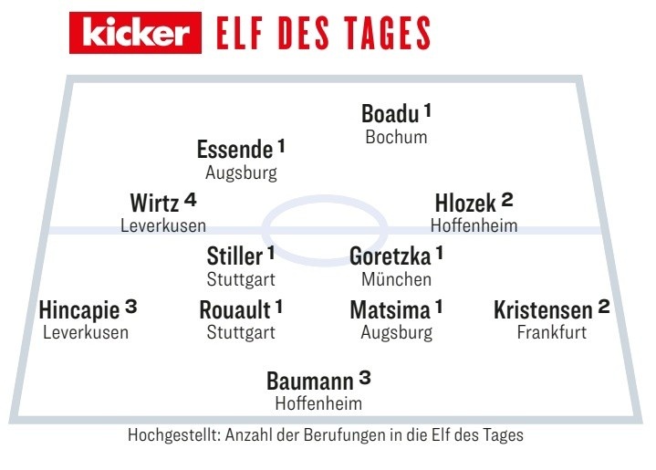 發(fā)布時間:2025年01月20日 13:50點擊:欄目:足球新聞 1月20日訊 德甲第18輪比賽戰(zhàn)罷,《踢球者》評出了本輪最佳陣容,格雷茨卡、維爾茨在列。踢球者德甲第18輪最佳陣容門將:鮑曼(霍芬海姆)后衛(wèi):辛卡佩(勒沃庫森)、魯奧(斯圖加特)、馬西瑪(奧格斯堡)、克里斯滕森(法蘭克福)中場:維爾茨(勒沃庫森)、斯蒂勒(斯圖加特)、格雷茨卡(拜仁)、赫洛澤克(霍芬海姆)前鋒:埃森德(奧格斯堡)、博阿杜(波鴻) 除特別注明外,本站所有內(nèi)容均為九球直播整理排版,轉載請注明出處:踢球者德甲第18輪最佳陣容:格雷茨卡、維爾茨、斯蒂勒在列 本文標簽: 足球 德甲 拜仁慕尼黑 勒沃庫森 奧格斯堡 霍芬海姆 斯圖加特 波鴻 法蘭克福