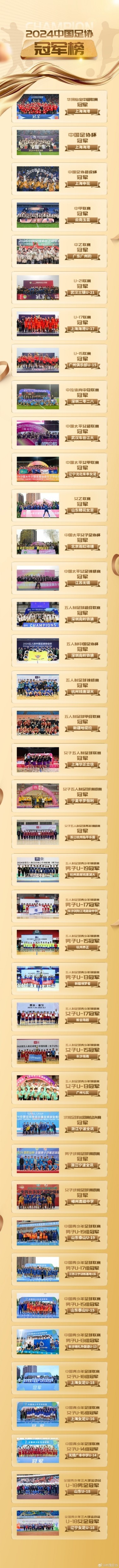 12月31日訊 中國(guó)足協(xié)發(fā)布年終盤(pán)點(diǎn),曬出了2024年度中國(guó)足壇從職業(yè)到青少年、從11人制到五人制沙足的40支冠軍球隊(duì)。