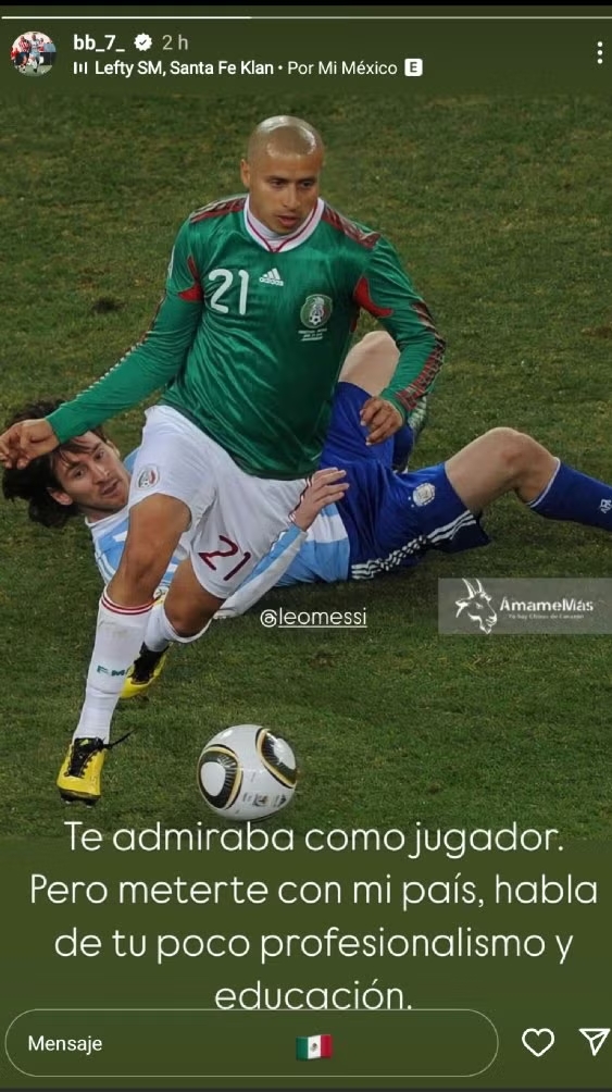 - 前墨西哥國(guó)腳批梅西:你攻擊我的國(guó)家,說(shuō)明你缺乏職業(yè)精神和教養(yǎng)