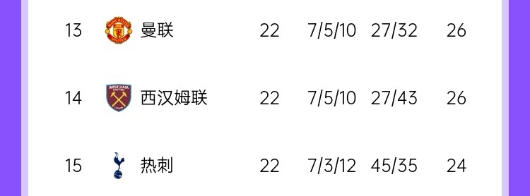 發(fā)布時(shí)間:2025年01月21日 08:50點(diǎn)擊:欄目:足球新聞 除特別注明外,本站所有內(nèi)容均為九球直播整理排版,轉(zhuǎn)載請注明出處:穩(wěn)定曼聯(lián)首回合負(fù)熱刺后第13,次回合將至仍第13,熱刺8→15 本文標(biāo)簽: 足球 英超 曼聯(lián) 熱刺 話題