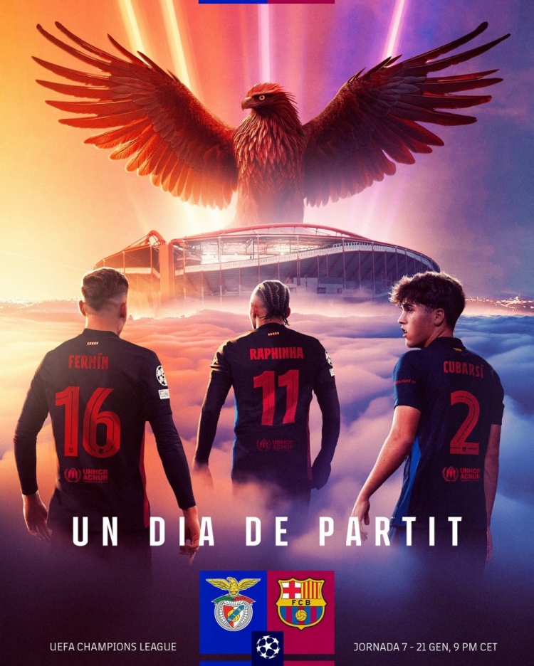 發(fā)布時間:2025年01月21日 17:50點(diǎn)擊:欄目:足球新聞 1月21日訊 北京時間明天凌晨4點(diǎn),巴薩將在歐冠第7輪比賽中客場對陣本菲卡。巴薩發(fā)布了為此役制作的海報(bào),內(nèi)容為拉菲尼亞、庫巴西、費(fèi)爾明在云霧中走向光明球場,而代表本菲卡的雄鷹在球場上方展翅。 除特別注明外,本站所有內(nèi)容均為九球直播整理排版,轉(zhuǎn)載請注明出處:巴薩曬客戰(zhàn)本菲卡海報(bào):拉菲尼亞、庫巴西、費(fèi)爾明走向光明球場 本文標(biāo)簽: 足球 西甲 巴塞羅那 歐冠 葡超