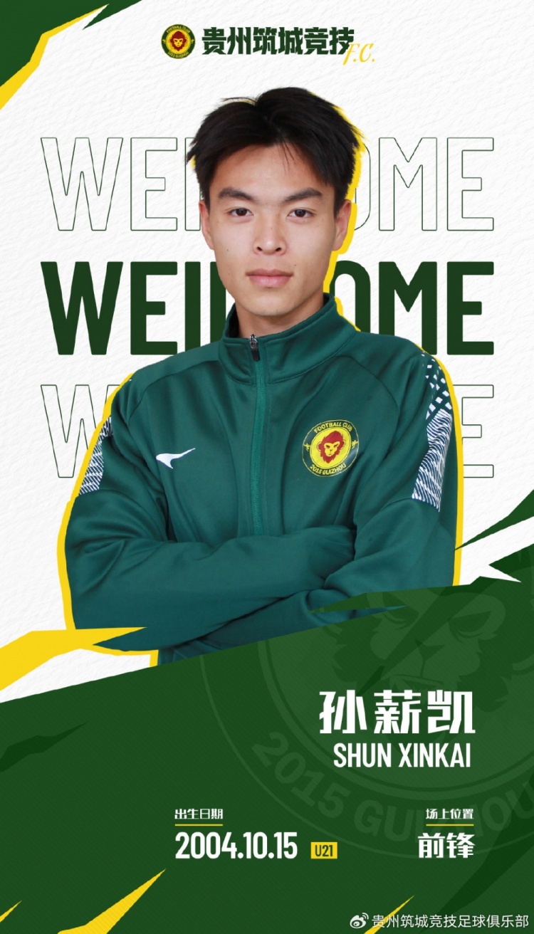 歡迎孫薪凱加入貴州筑城競技大家庭,讓我們一起凝心聚力,一起為貴州而戰(zhàn)!