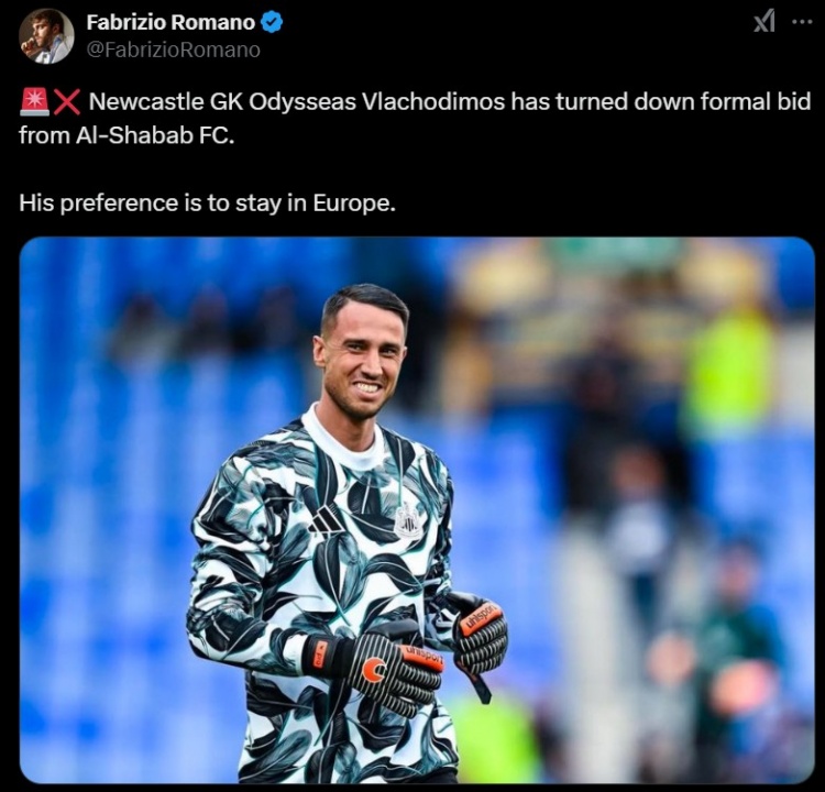 1月21日訊 據(jù)知名轉(zhuǎn)會專家羅馬諾報道,紐卡門將弗拉喬迪莫斯已經(jīng)拒絕了來自利雅得青年人的正式報價,他的優(yōu)先選擇還是繼續(xù)留在歐洲踢球。