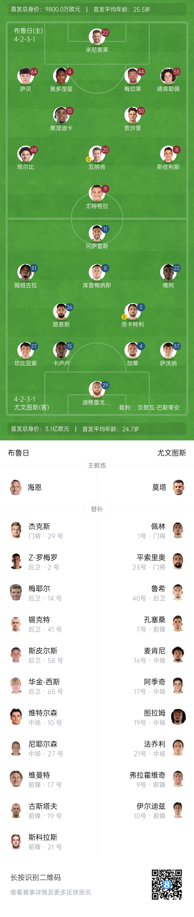 布魯日替補(bǔ):29-杰克斯、2-Z-羅梅羅、14-梅耶爾、41-錫克特、58-斯皮爾斯、65-華金-西斯、10-維特爾森、27-尼耶爾森、17-維曼特、19-古斯塔夫、21-斯科拉斯