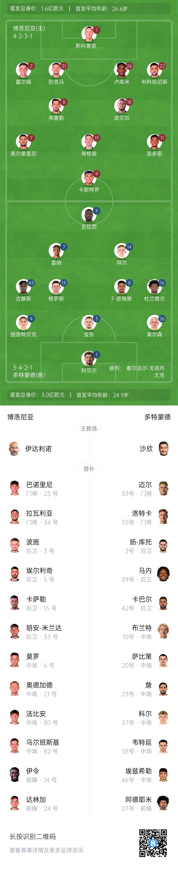 01月22日訊 北京時(shí)間1月22日星期三04:00,歐冠聯(lián)賽階段第7輪博洛尼亞對(duì)陣多特蒙德,目前雙方公布了本場(chǎng)比賽的首發(fā)陣容。