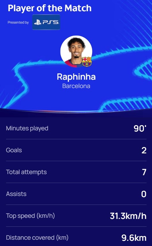 發(fā)布時(shí)間:2025年01月22日 06:50點(diǎn)擊:欄目:足球新聞 1月22日訊 巴薩在本輪歐冠5-4絕殺本菲卡,拉菲尼亞在賽后當(dāng)選為本場(chǎng)官方最佳球員。拉菲尼亞在本場(chǎng)比賽7次射門、3次射正并打進(jìn)2球,另有3次關(guān)鍵傳球和8次成功對(duì)抗,跑動(dòng)距離9.6公里,最快速度31.3公里每小時(shí),堪稱取勝最大功臣。 除特別注明外,本站所有內(nèi)容均為九球直播整理排版,轉(zhuǎn)載請(qǐng)注明出處:7射進(jìn)2球!官方:拉菲尼亞當(dāng)選本菲卡vs巴薩全場(chǎng)最佳 本文標(biāo)簽: 足球 西甲 巴塞羅那 歐冠