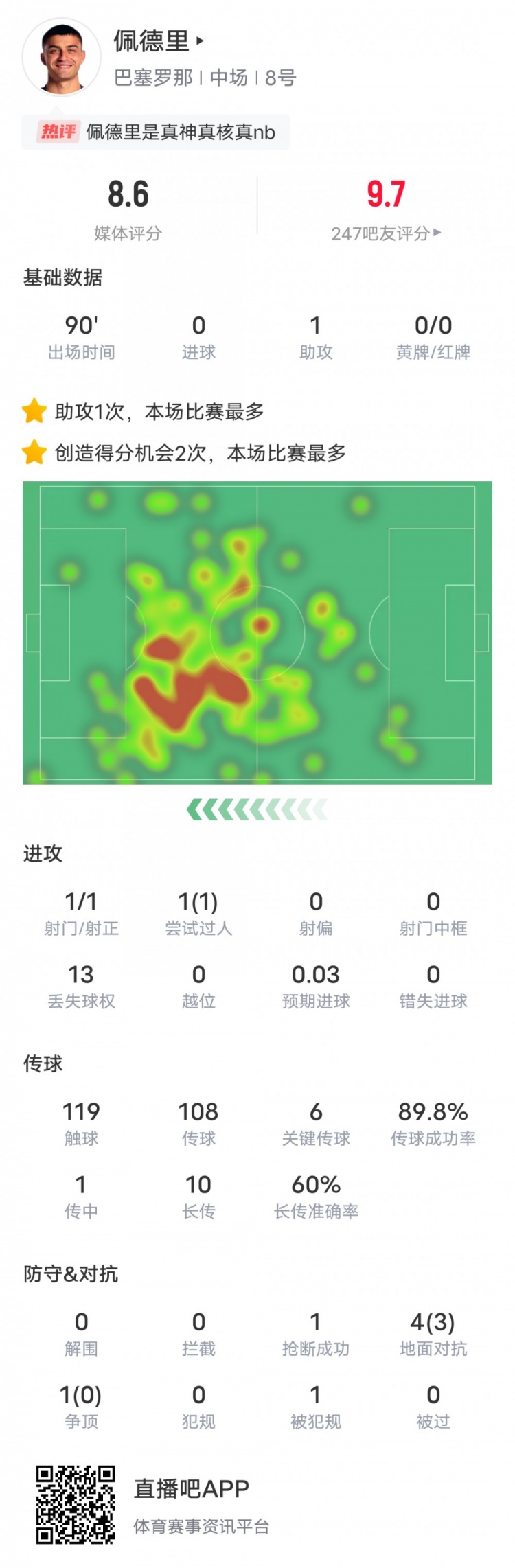 除特別注明外,本站所有內(nèi)容均為九球直播整理排版,轉(zhuǎn)載請注明出處:佩德里本場比賽數(shù)據(jù):1助攻+6關(guān)鍵傳球1過人成功,評分8.6