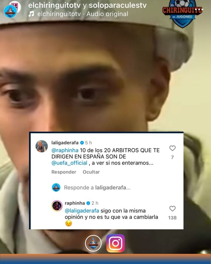 記者Rafa Guerrero在社交媒體中艾特拉菲尼亞,再次提及裁判的判罰問題:“在西班牙,執(zhí)法你的20名裁判中有10位來自歐足聯(lián),看看我們是否能夠理解......”