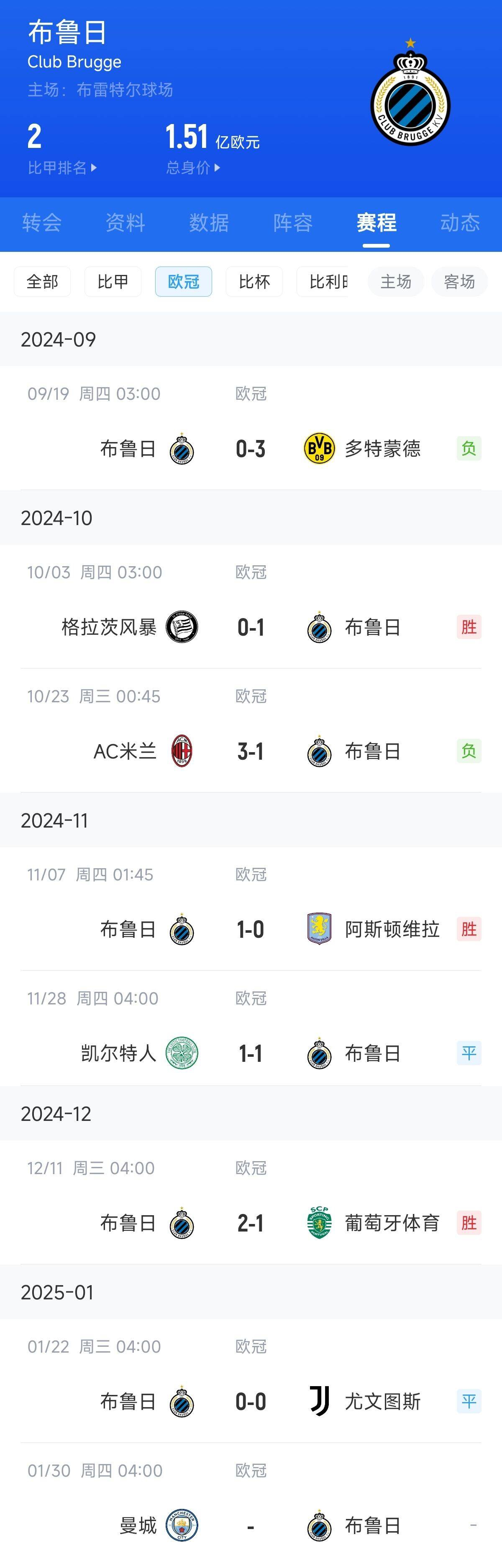 發(fā)布時間:2025年01月23日 13:41點擊:欄目:足球新聞 01月23日訊 歐冠聯(lián)賽階段第7輪戰(zhàn)罷,曼城2-4不敵巴黎,掉入淘汰區(qū)。末輪曼城將對陣布魯日,若是贏球則必定出線(晉級附加賽),若是不勝則必定出局。而布魯日本屆歐冠的戰(zhàn)績雖然不佳,但是球隊曾擊敗維拉和葡體以及戰(zhàn)平尤文,也是不容小覷的球隊。 除特別注明外,本站所有內(nèi)容均為九球直播整理排版,轉(zhuǎn)載請注明出處:生死局!曼城贏球必出線&曼城不勝必出局,布魯日曾平尤文勝維拉 本文標(biāo)簽: 足球 意甲 AC米蘭 英超 曼城 阿斯頓維拉