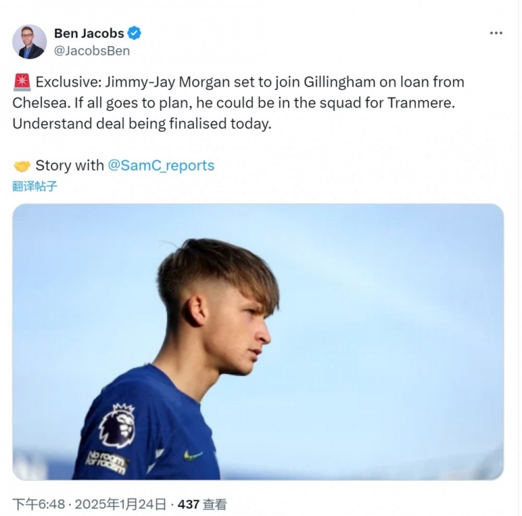 發(fā)布時間:2025年01月24日 19:50點擊:欄目:足球新聞 1月24日訊 據(jù)記者雅各布斯透露,切爾西19歲前鋒吉米-摩根將租借加盟吉靈漢姆。雅各布斯指出,切爾西小將摩根將租借加盟英乙俱樂部吉靈漢姆,如果一切順利,他可能進入對陣特蘭米爾的大名單,各方今天敲定這筆交易。摩根效力于切爾西U21青年隊,本賽季出戰(zhàn)13場比賽,打進6球。 除特別注明外,本站所有內(nèi)容均為九球直播整理排版,轉(zhuǎn)載請注明出處:記者:切爾西19歲前鋒摩根將租借加盟英乙吉靈漢姆 本文標(biāo)簽: 足球 英超 切爾西 轉(zhuǎn)會