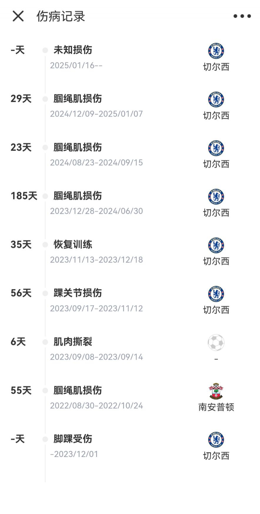 加盟切爾西1年半,拉維亞受傷的天數(shù)已經(jīng)超過了330天。