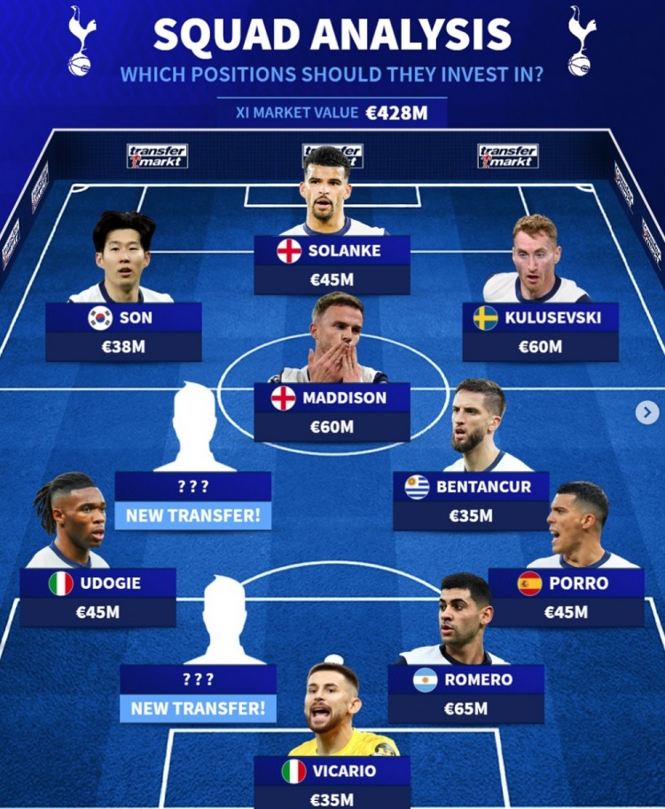 1月25日訊 熱刺在本賽季英超表現(xiàn)掙扎,《轉(zhuǎn)會市場》對熱刺主力陣簡要分析,認為他們還需要至少引進兩位主力級新援。
