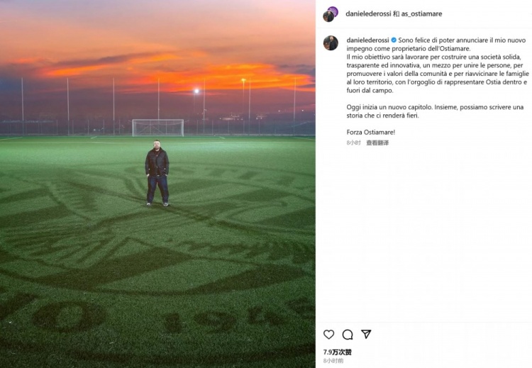 1月25日訊 羅馬名宿德羅西在今日通過社媒自宣,成為羅馬業(yè)余俱樂部奧斯蒂亞馬雷的新老板。