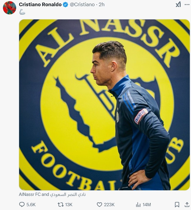 1月26日訊 C羅更新社媒,曬出了自己?jiǎn)为?dú)的訓(xùn)練照,背景中是利雅得勝利的大隊(duì)徽,并表示道:
