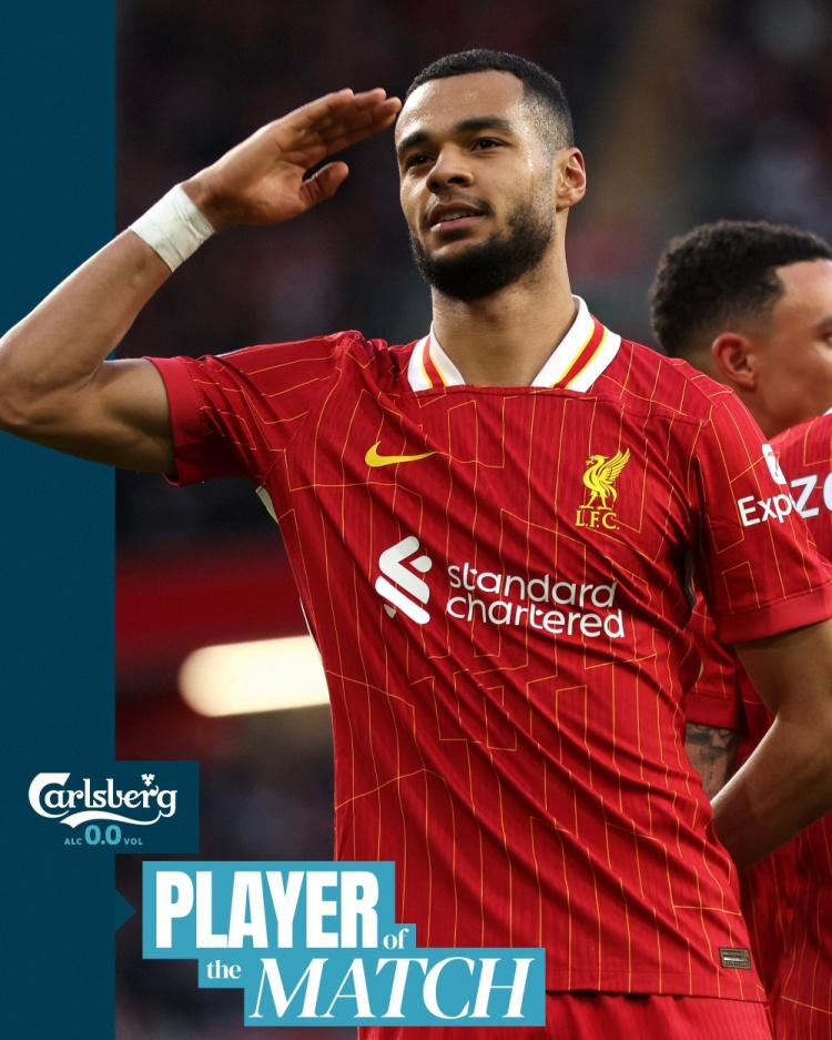 賽后利物浦官方宣布,本場比賽中打進2球助攻1次的加克波當選為隊內(nèi)的最佳球員。