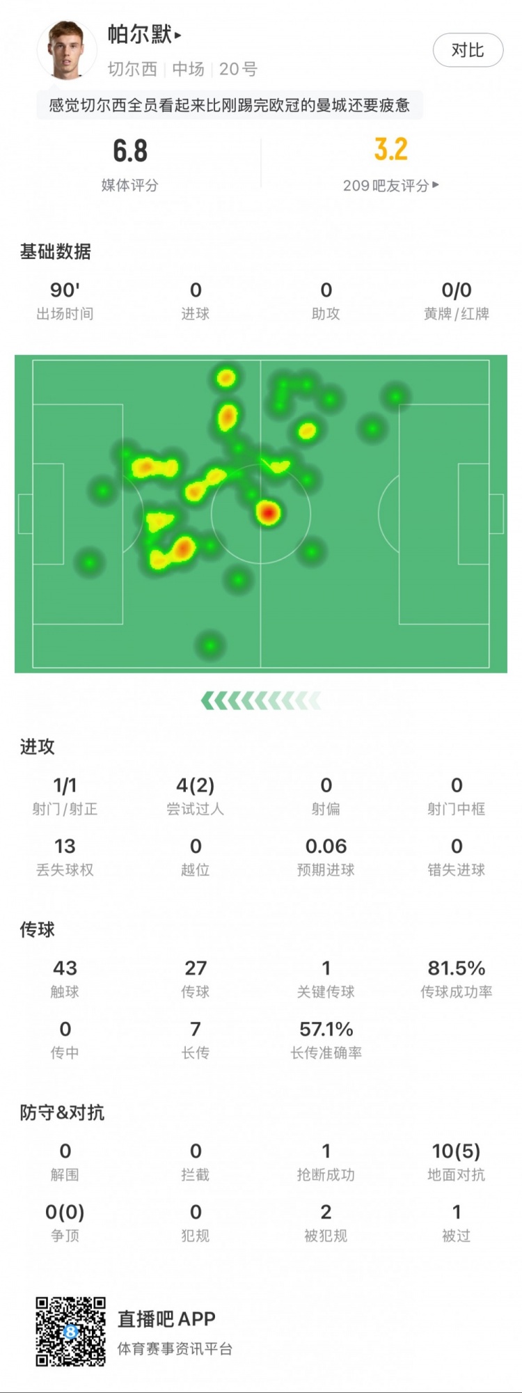 除特別注明外,本站所有內(nèi)容均為九球直播整理排版,轉(zhuǎn)載請(qǐng)注明出處:戰(zhàn)舊主!帕爾默本場(chǎng)數(shù)據(jù):1次關(guān)鍵傳球,1次射門,2次成功過(guò)人