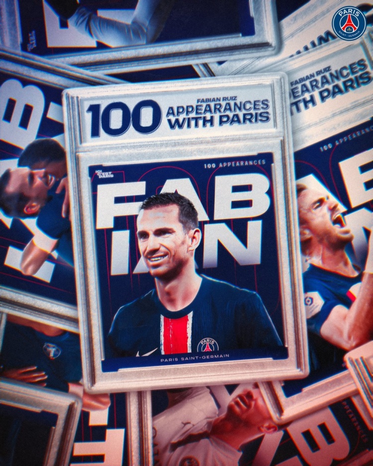 據(jù)巴黎圣日耳曼官方統(tǒng)計(jì),本場(chǎng)比賽是法比安-魯伊斯為球隊(duì)出戰(zhàn)的第100場(chǎng)比賽,巴黎官推也曬出海報(bào),并配文寫道:“這是法比安-魯伊斯身穿巴黎球衣出戰(zhàn)的第100場(chǎng)比賽!”