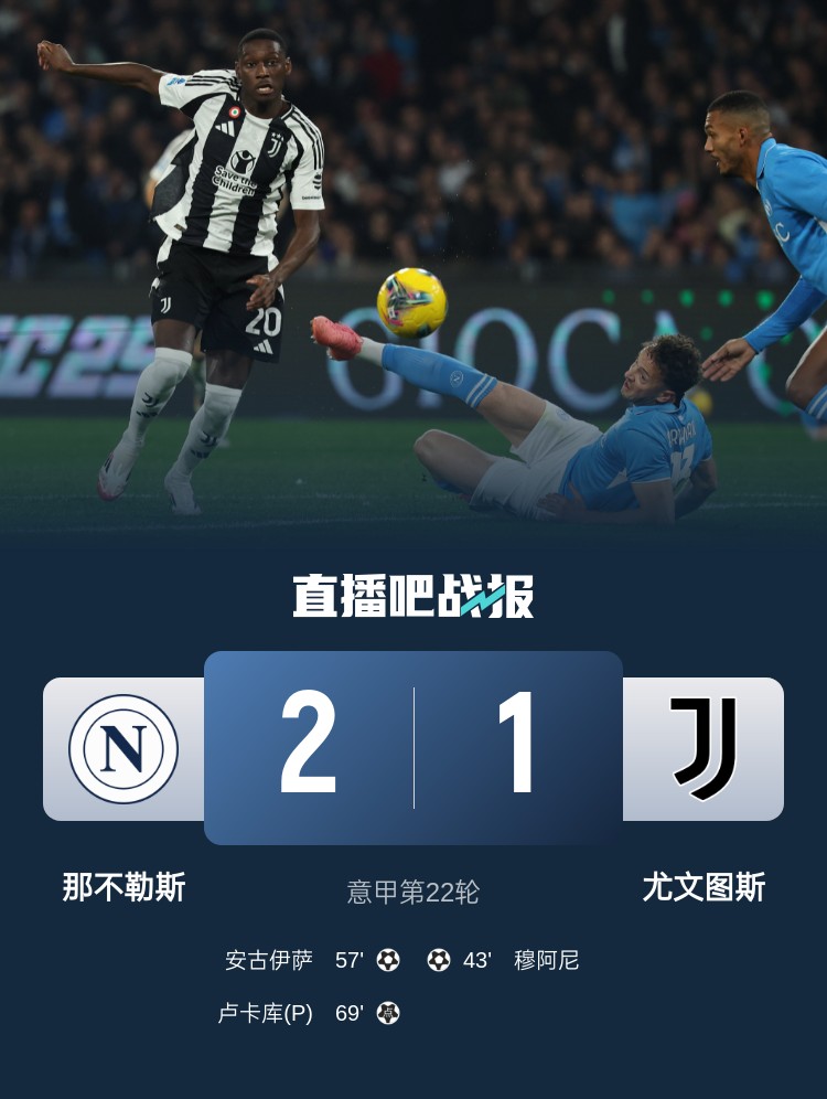 意甲第22輪,那不勒斯2-1逆轉(zhuǎn)尤文圖斯,穆阿尼首秀破門,盧卡庫制勝。