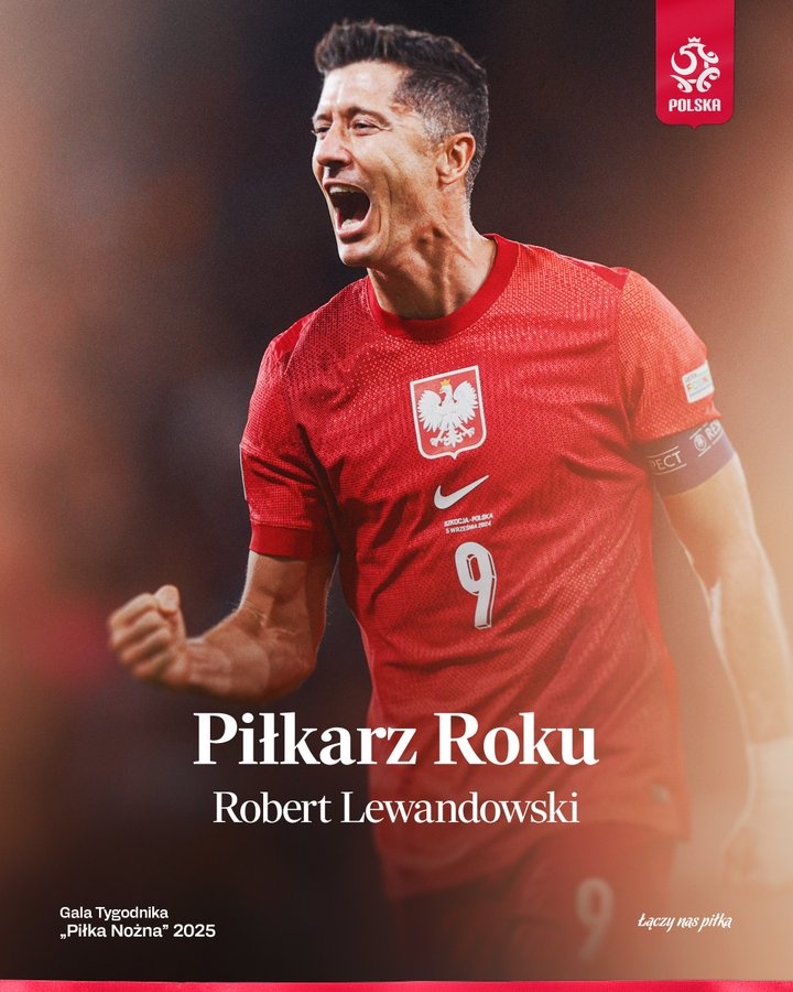 1月28日訊 波蘭國(guó)家隊(duì)官方消息,萊萬(wàn)多夫斯基被評(píng)為2024年波蘭足球先生。