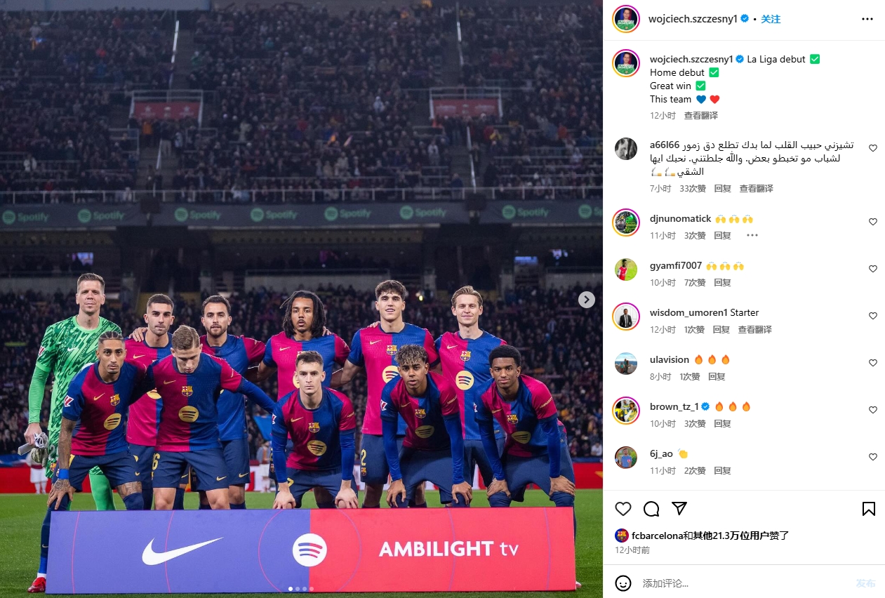 除特別注明外,本站所有內(nèi)容均為九球直播整理排版,轉(zhuǎn)載請(qǐng)注明出處:什琴斯尼社媒:西甲和巴薩主場(chǎng)首秀達(dá)成,一次大勝達(dá)成,巴薩真棒