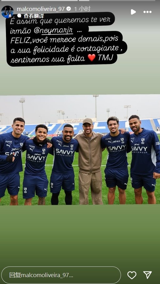 1月29日訊 利雅得新月官方宣布,和內(nèi)馬爾已經(jīng)協(xié)商解約。效力利雅得新月的巴西邊鋒馬爾科姆更新動(dòng)態(tài),告別了內(nèi)馬爾。