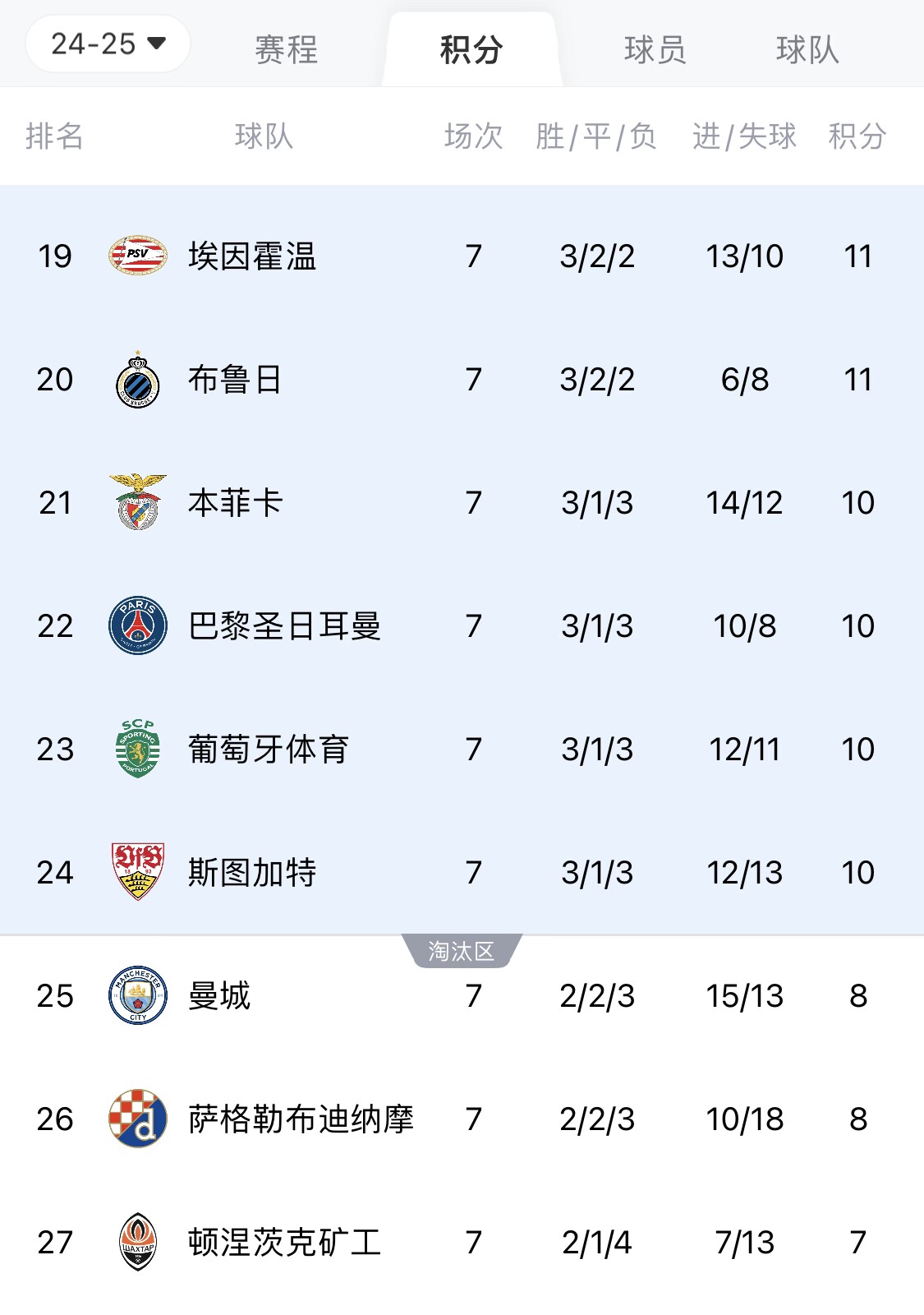 還不確定能否晉級(jí)球隊(duì)(9隊(duì)):埃因霍溫、布魯日、本菲卡、巴黎、葡萄牙體育、斯圖加特、曼城、薩格勒布迪納摩、頓涅茨克礦工