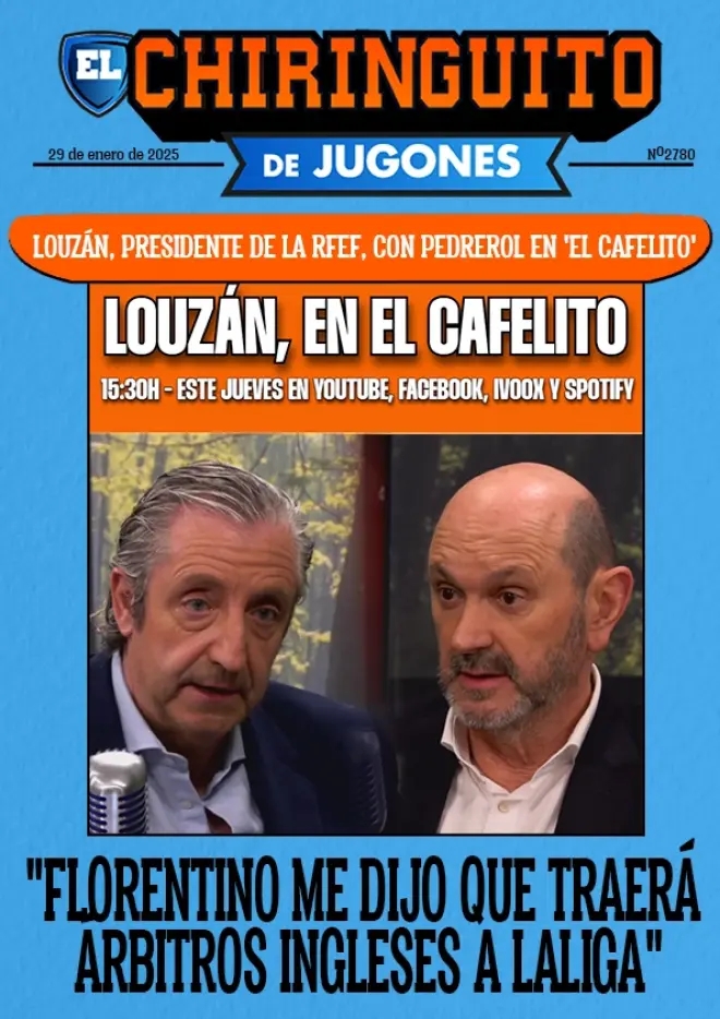 01月29日訊 西班牙足協(xié)新任主席盧贊(Rafael Louzán)參加六臺節(jié)目,接受了六臺主持人何塞普-佩德雷羅的采訪。他在采訪中透露了弗洛倫蒂諾對裁判問題的看法。